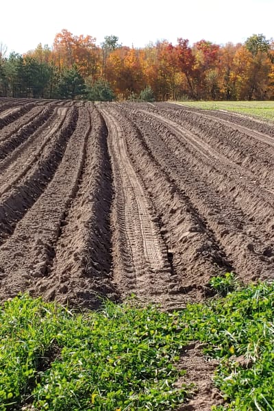 Loam and heavier soils are desirable for organic farming because they are made up of tiny, more plentiful particles and have considerably more nutrient reserves and exchanges between them than sandy soils. This type of soil retains water better, keeping it fertile and requiring less irrigation. Earthworms thrive and break down the organic matter from our cover crops and other dead matter, releasing nutrients into the soil.